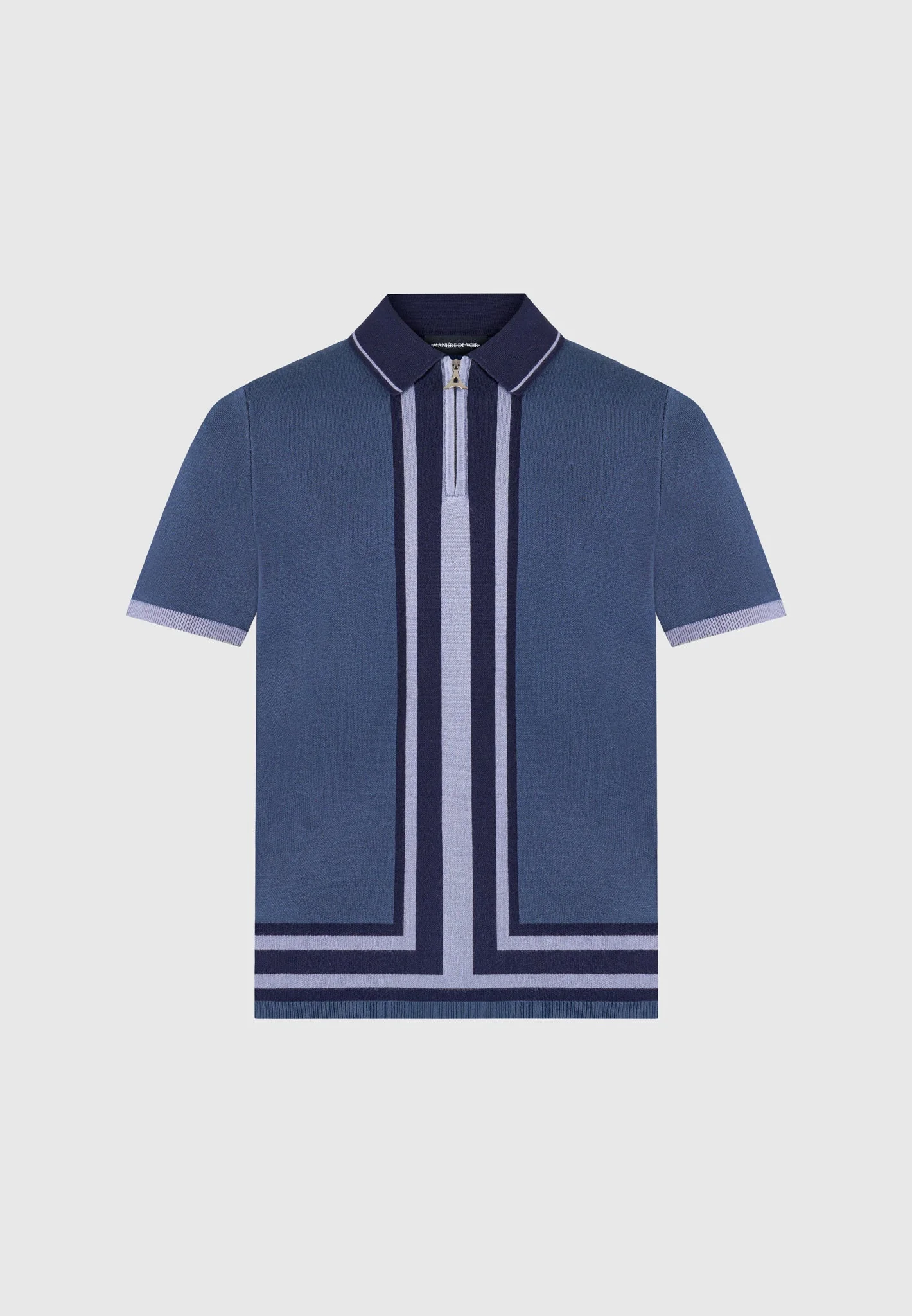 Contrast Border Knit Zip Polo Shirt - Blue